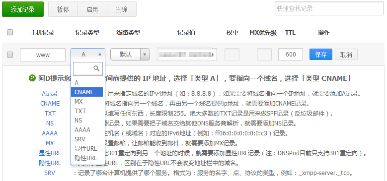 以前有A記錄的解析,需要將原來的A記錄進(jìn)行刪除