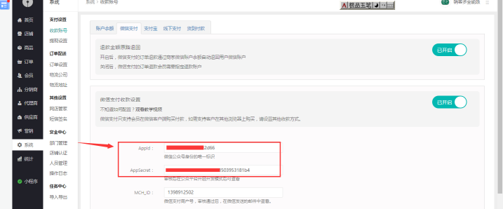 建議直接在安菲云后臺(tái)系統(tǒng)--微信支付中復(fù)制 AppID 以及AppSecret(前提是需要先配置好微信支付),在下圖所示位置復(fù)制即可