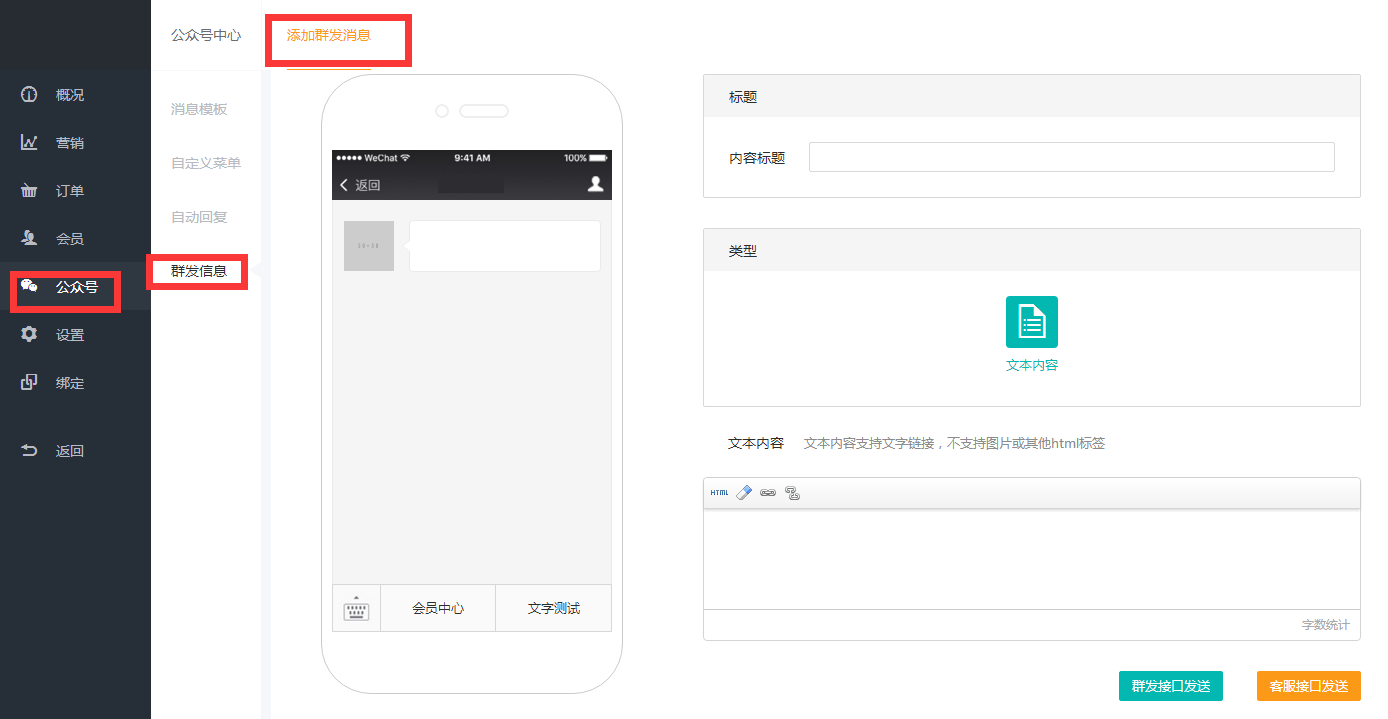 群發(fā)接口發(fā)送:會員每月只能接收4條群發(fā)消息