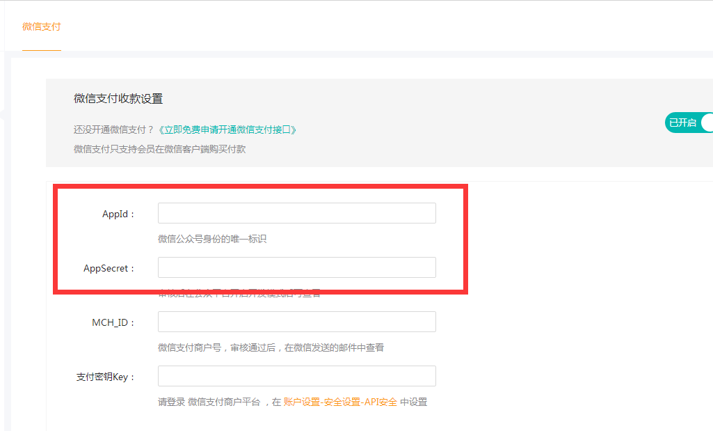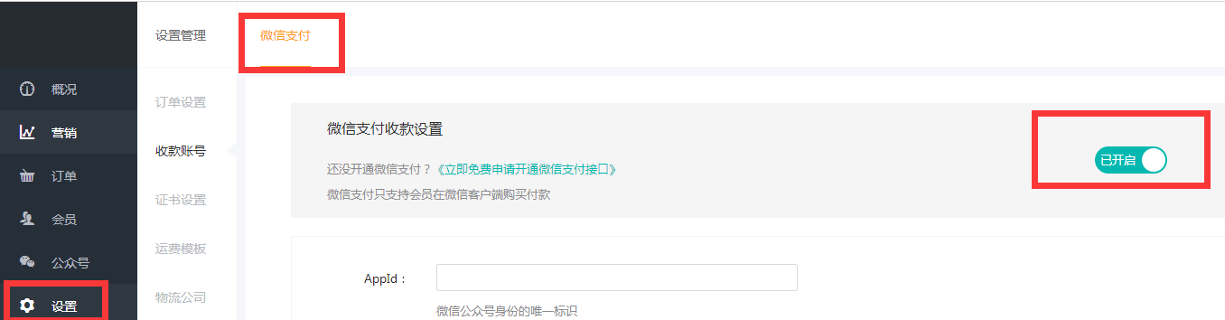 第一步 設(shè)置--收款賬號--開啟微信支付
