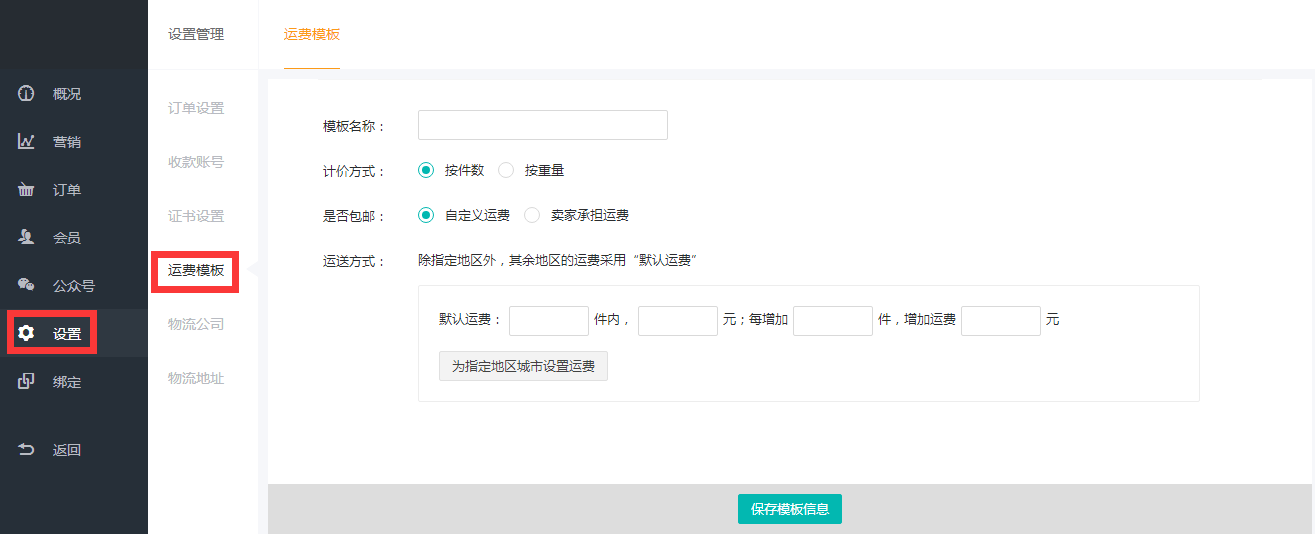 模版名稱:運(yùn)費(fèi)模版的名稱;