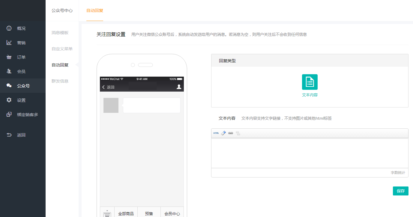 設(shè)置會員在微信上收到的消息及內(nèi)容。