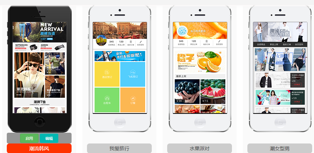 ?、?啟用:點擊啟用將應用此套模版作為自己的商城首頁,可以在此套模板的基礎(chǔ)上進行二次編輯。