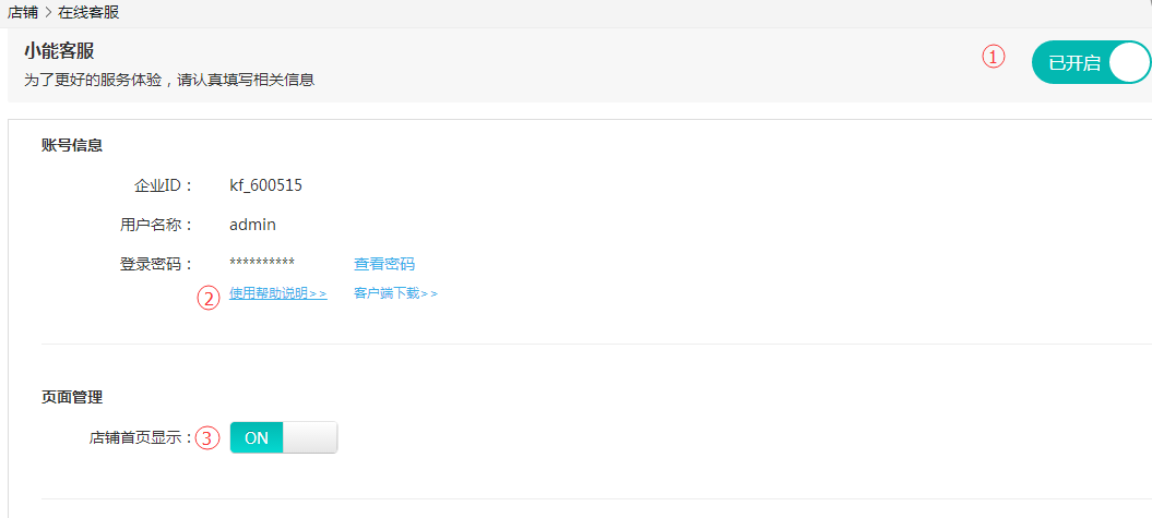 ③店鋪首頁顯示:開啟則小能客服會在前臺顯示,顯示方式為綠色小圖標,點擊可以在線咨詢。