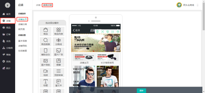 ① 編輯:針對該模版進行店鋪首頁的裝修