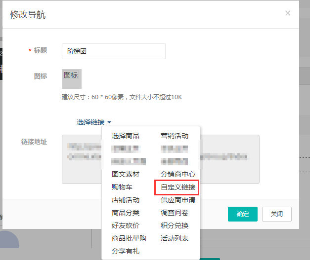 注意:若要使用商城外部鏈接請使用自定義鏈接