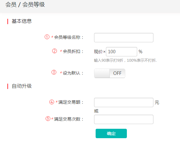 ⑤ 交易次數(shù):達(dá)到設(shè)置的交易次數(shù)后,會員等級會自動(dòng)升級;