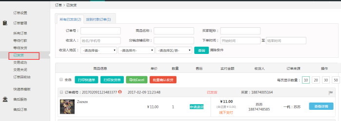 ① 已發(fā)貨的訂單:可查看已發(fā)貨訂單中貨到付款的訂單;