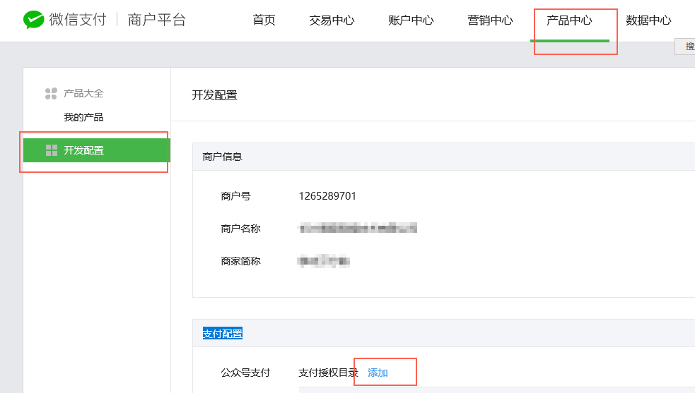 第二步,登陸微信商戶平臺,添加“支付配置”