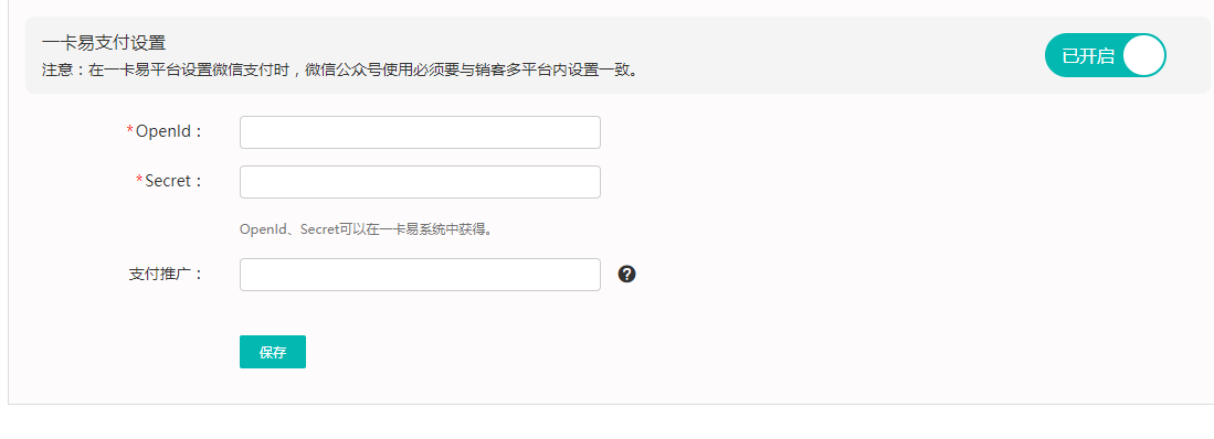 第三步,在安菲云商城內(nèi)配置“一卡易支付”參數(shù)
