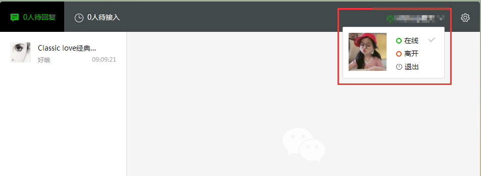 點擊在線狀態(tài),可以選擇在線狀態(tài)、離開狀態(tài)或者退出登陸
