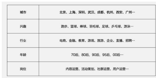 2、其次可以按照不同維度進行拆解,建立多個小群,比如按照城市、興趣、行業(yè)、年齡、崗位等不同維度劃分