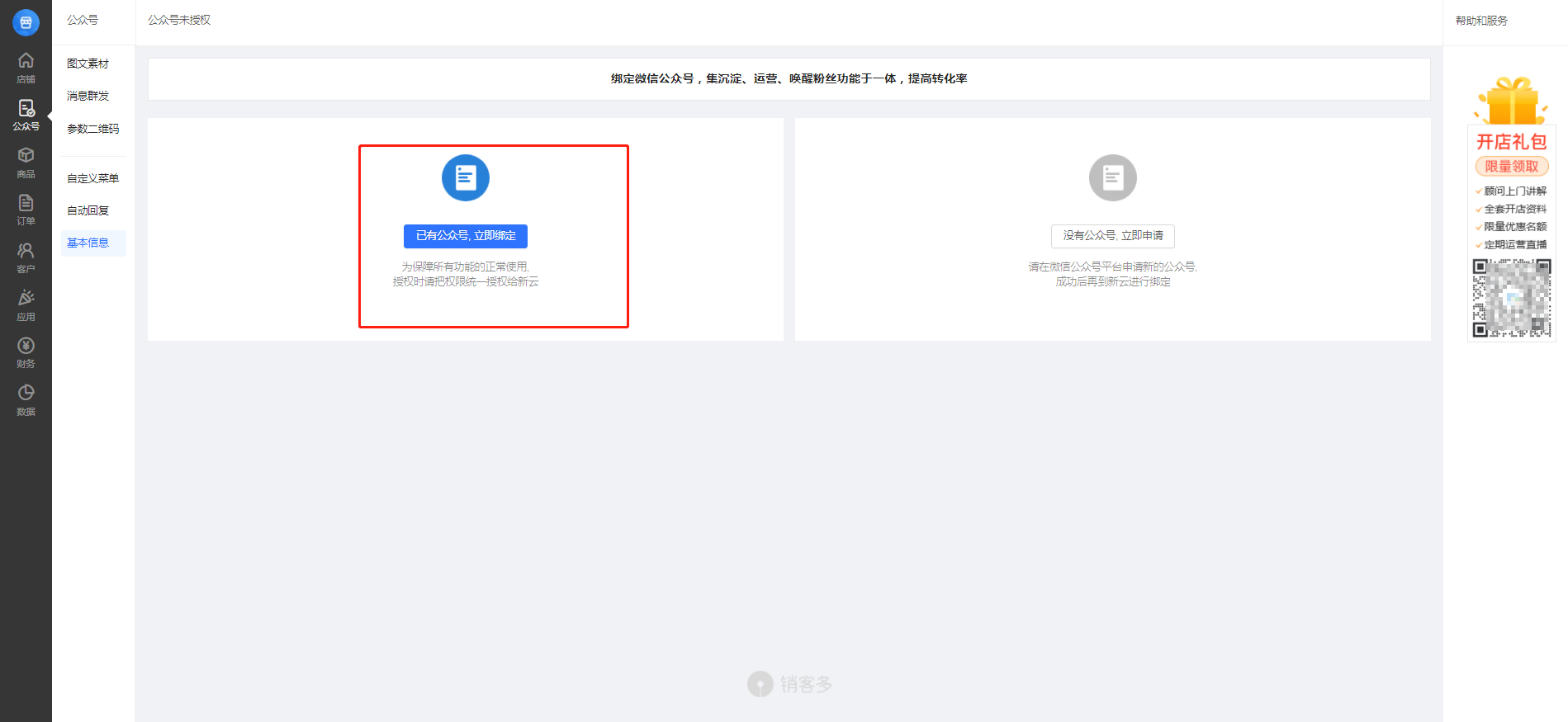 微信服務(wù)號注冊好之后就需要注冊微信商城系統(tǒng),注冊鏈接https://account.jszxcn.com/,點擊就可以先注冊免費開通7天試用,通過管理后臺公眾號--基本信息與公眾服務(wù)號進行綁定,按照配置指導提示操作即可
