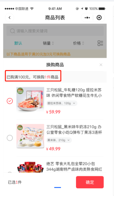 當(dāng)消費訂單達(dá)到指定金額,下單時就會提示會員可換購,消費者可以選擇換購商品,也可以不選擇。