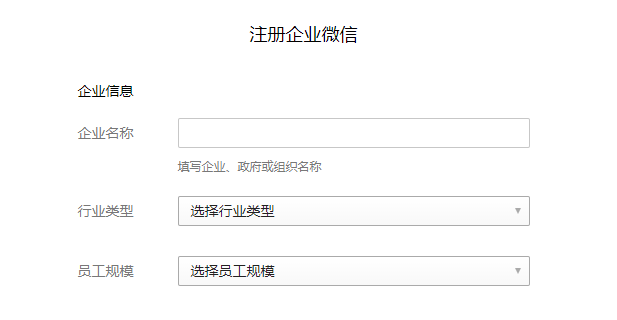 進入到注冊企業(yè)微信頁面,填寫企業(yè)信息