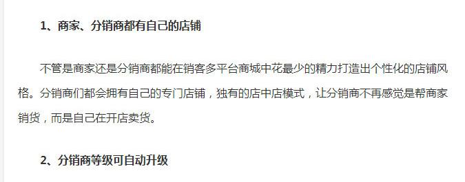 1、商家、分銷(xiāo)商都有自己的店鋪