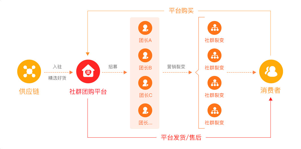 整合社群資源以及供應(yīng)鏈,集中供貨減少中間環(huán)節(jié),獲取更多利潤空間,沉淀私域流量,