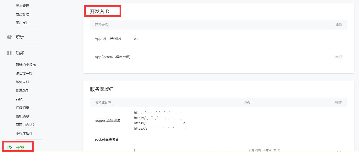 1)登錄小程序平臺:https://mp.weixin.qq.com開發(fā)--開發(fā)設(shè)置--開發(fā)者ID