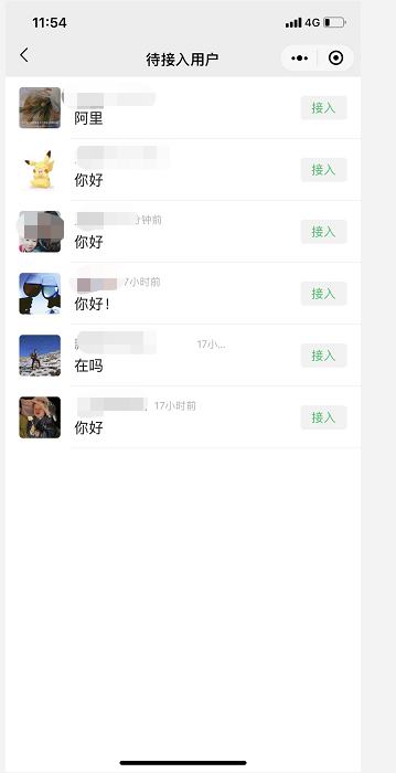5、【對話】菜單頁面可以點擊查看【待接入用戶】的消息,點開即可與客戶對話