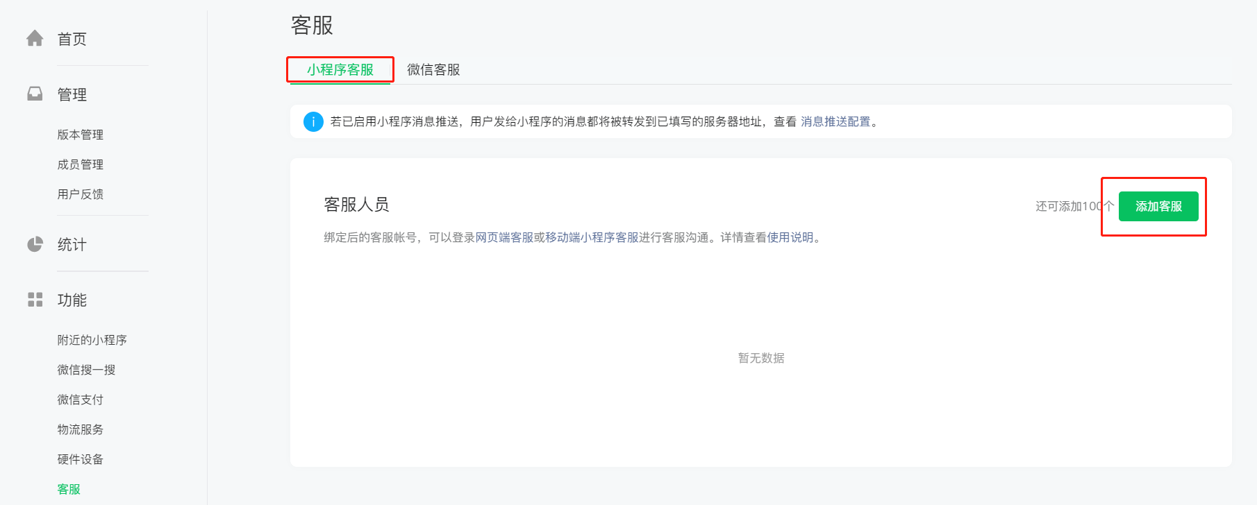 1、登錄微信小程序后臺https://mp.weixin.qq.com-客服-查看-小程序客服--添加客服